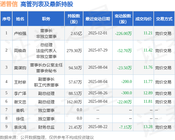 证券之星消息,根据12月25日市场公开信息、上市公司公告及交易所披露数据整理,诺普信(002215)最新董监高及相关人员股份变动情况:2025年12月24日公司董事卢柏强共减持公司股份500.0万股,占公司总股本为0.4974%。变动期间公司股价上涨1.45%,12月24日当日收盘报10.46元。