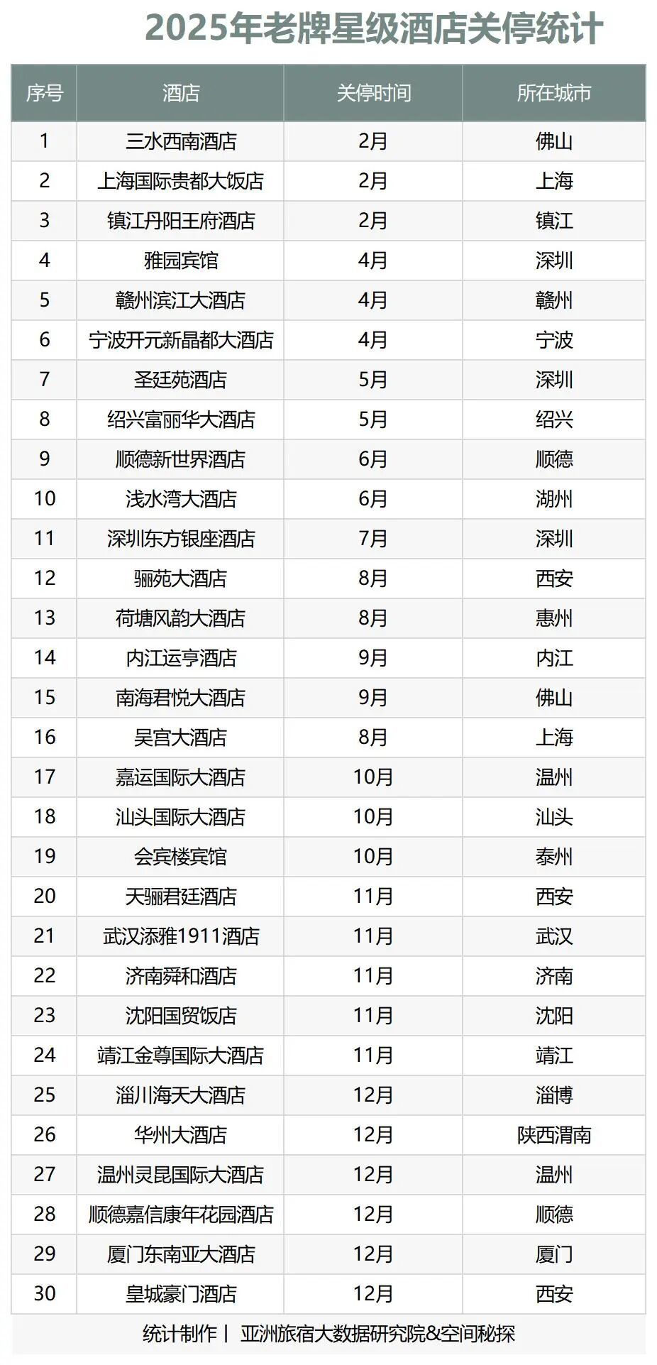 2025年老牌星级酒店关停统计