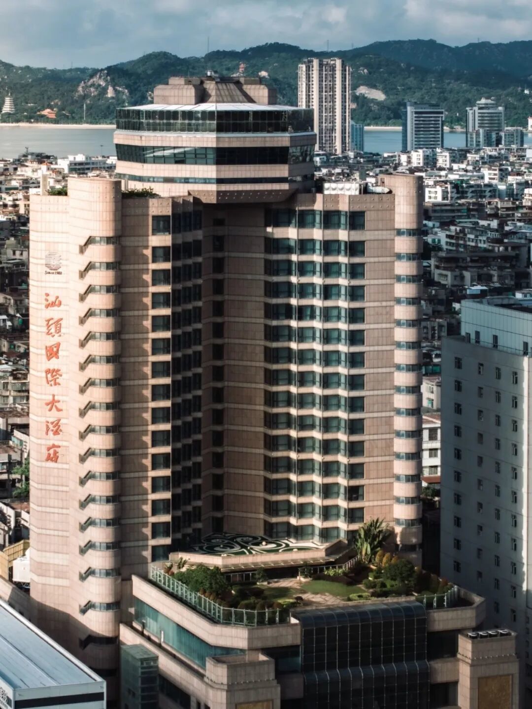汕头国际大酒店始建于1988年,为当时汕头市区中心最早四星酒店,占据当时高级酒店服务领头位置多年。作为汕头老牌酒店,它还有多个头衔,曾是汕头的第一高楼,是粤东地区首家星级酒店,拥有唯一的高空旋转餐厅等。国际大酒店23层的“旋宫邀月”是20世纪90年代“汕头八景”之一,也是汕头改革开放的标志性建筑之一,是目前粤东唯一高层旋转餐厅,还是政府定点接待酒店,亦是2021年亚洲青年运动会接待酒店之一。