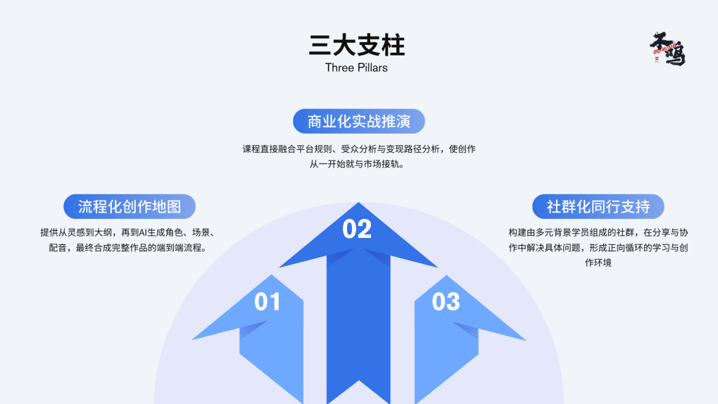 3. 社群化同行支持:构建由多元背景学员组成的社群,在分享与协作中解决具体问题,形成正向循环的学习与创作环境。