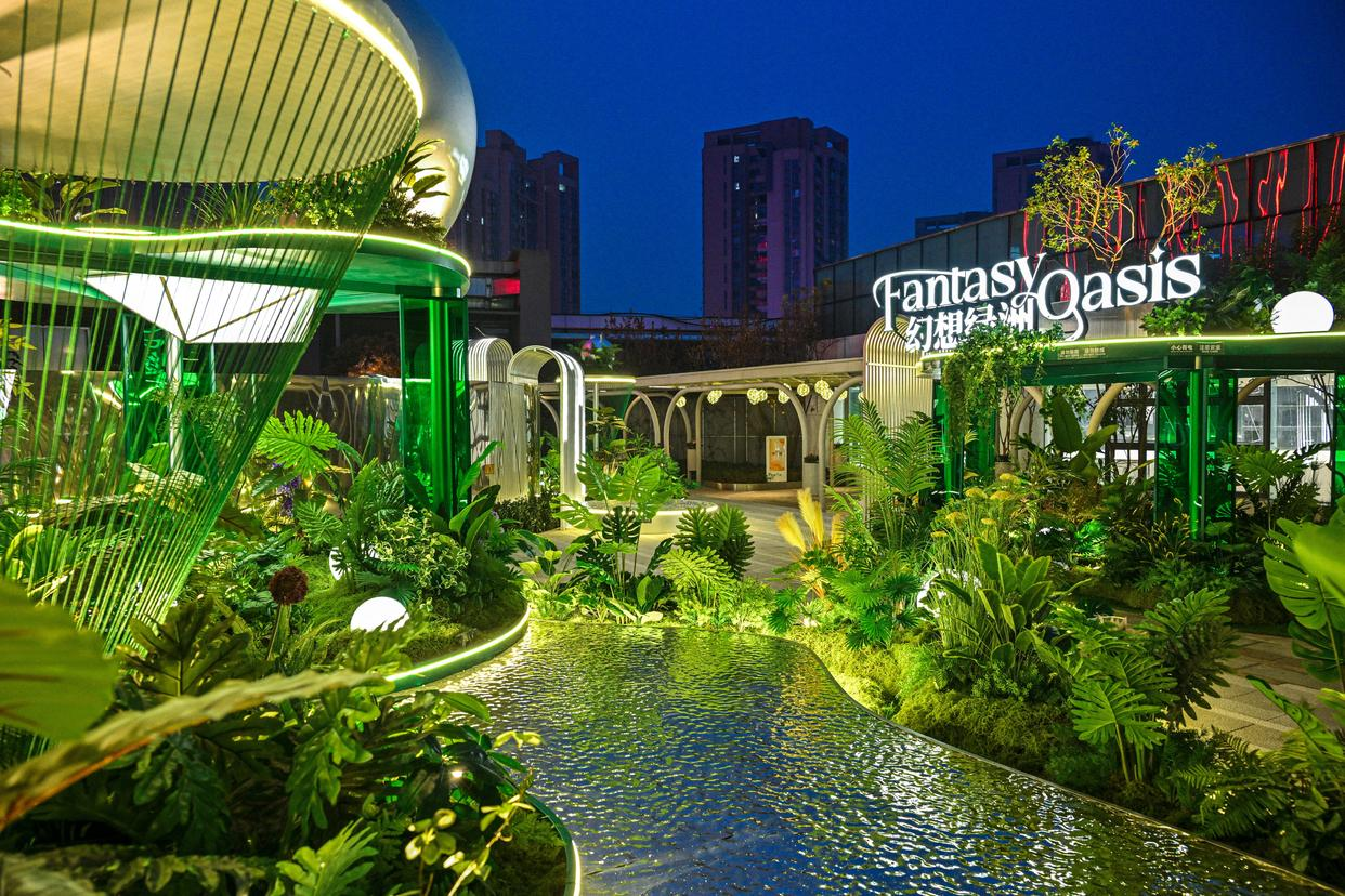 成都湾悦城不仅是兴趣场所、亲子空间,更是“家庭时间共同体”的承载地。该商场锚定“家庭成长陪伴”,重点打造了三大主题场景:以篮球为主题的“能量聚场”运动社交空间、莫兰迪色系构建的“童梦谷”亲子互动空间,以及5000㎡屋顶花园“幻想绿洲”。这些运动、自然、艺术等多元场景,以垂直动线与水平渗透相互连接,系统性地构建了一个承载家庭高质量陪伴、年轻人社交的“第三空间”。
