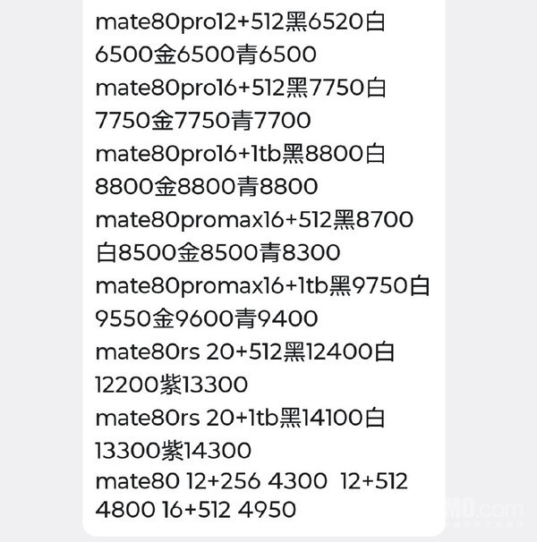 CNMO注意到,根据流出的报价单,华为Mate80系列各型号的价格区间已然清晰。其中,定位入门的Mate80(12GB+256GB)收货价约为4300元。中坚机型Mate80 Pro的价格则根据内存配置不同而划分:12GB+512GB版本价格在6500元左右,16GB+512GB版本约为7750元,而16GB+1TB顶配版则达到8800元。