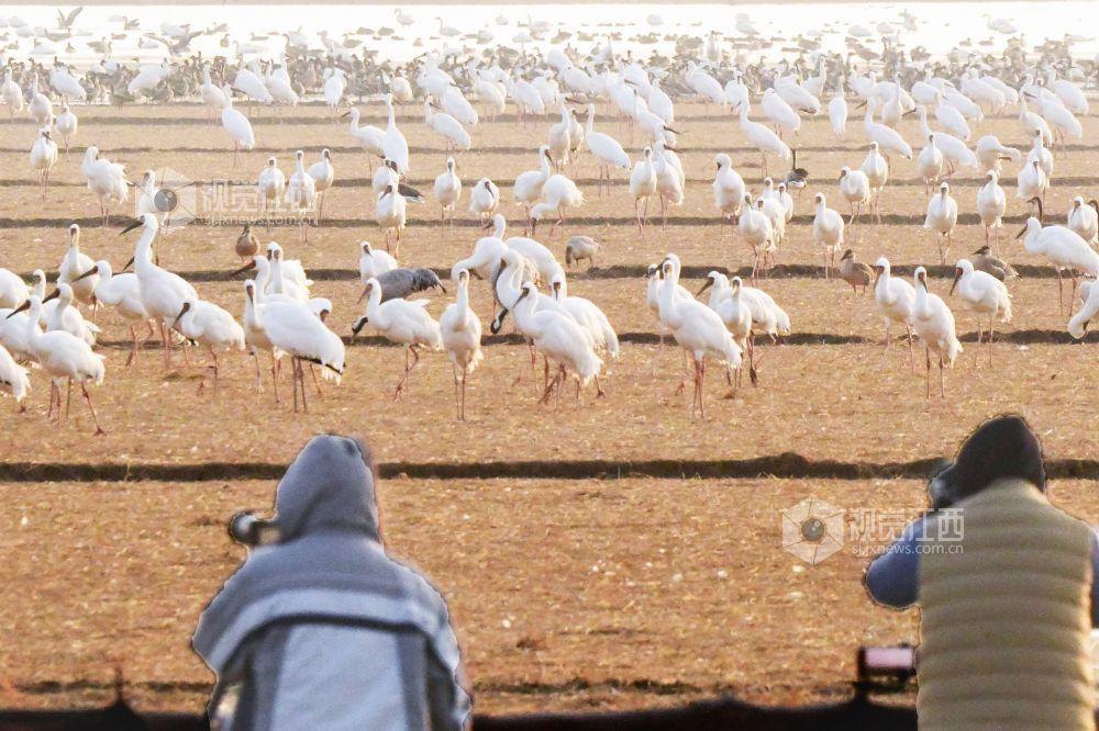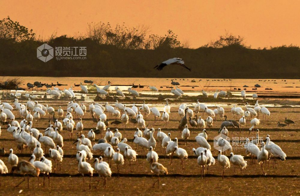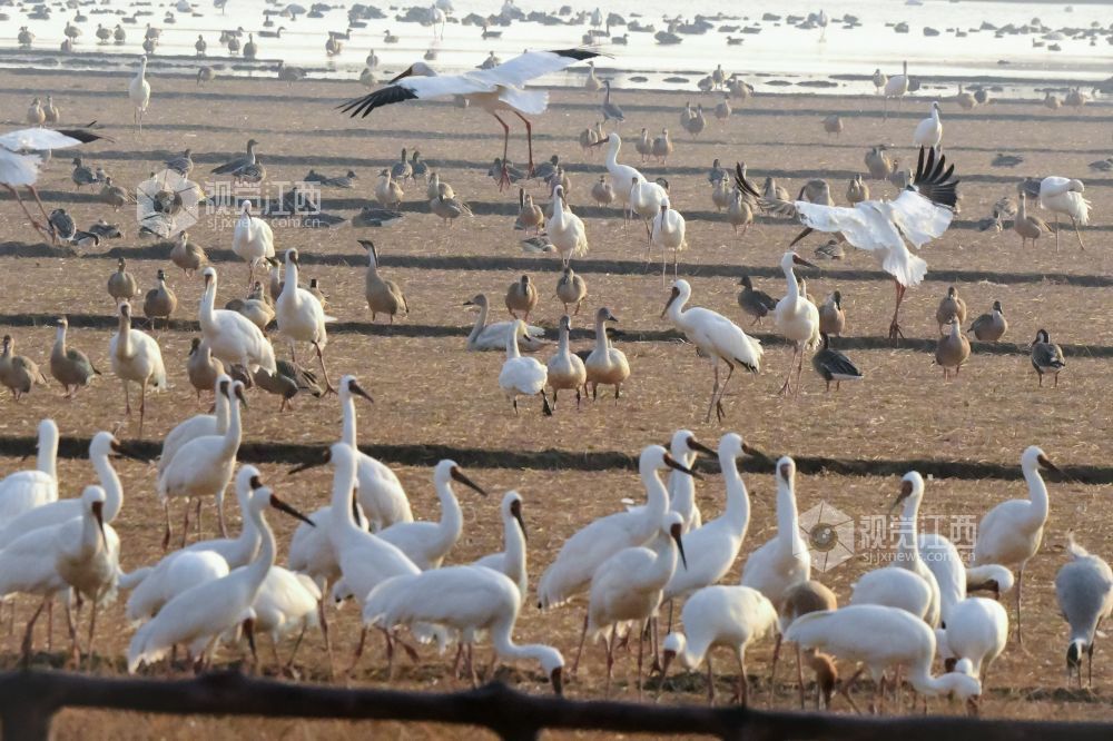 作为鄱阳湖生态廊道的重要组成部分,这里凭借优良的湿地环境,成为全球极危物种白鹤的核心越冬地。 据景区工作人员介绍,当日监测到国家一级保护动物白鹤3000余只,占全球白鹤种群相当比例,此外还有逾万只雁类等候鸟在此栖息。