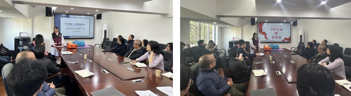 在急救技能培训环节,她通过“PPT讲解+实操演示”的方式,详细讲授心肺复苏、AED使用及海姆立克急救法的操作要领,帮助大家快速掌握应急自救互救技能。