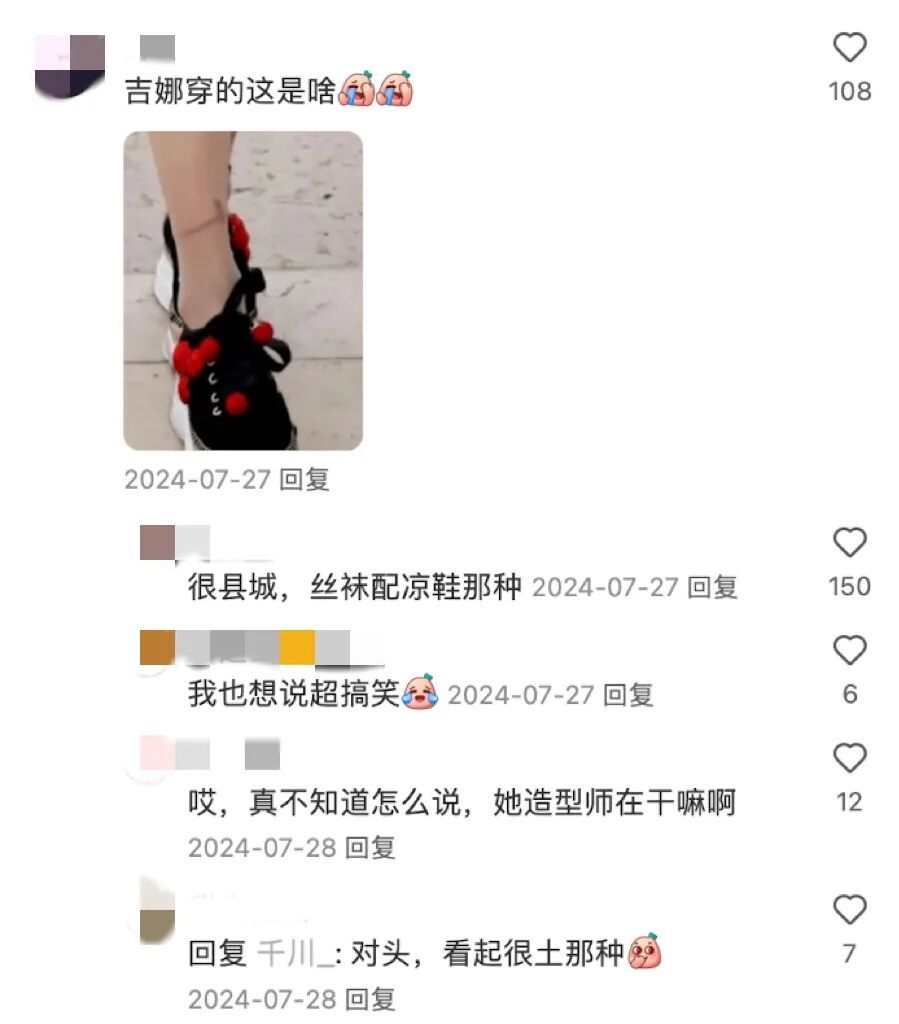 在巴黎奥运会当天的官方红毯上,外媒镜头也记录下了他们的甜蜜时刻,但吉娜丝袜和黑红色运动鞋的搭配也被网友群嘲“土气”。