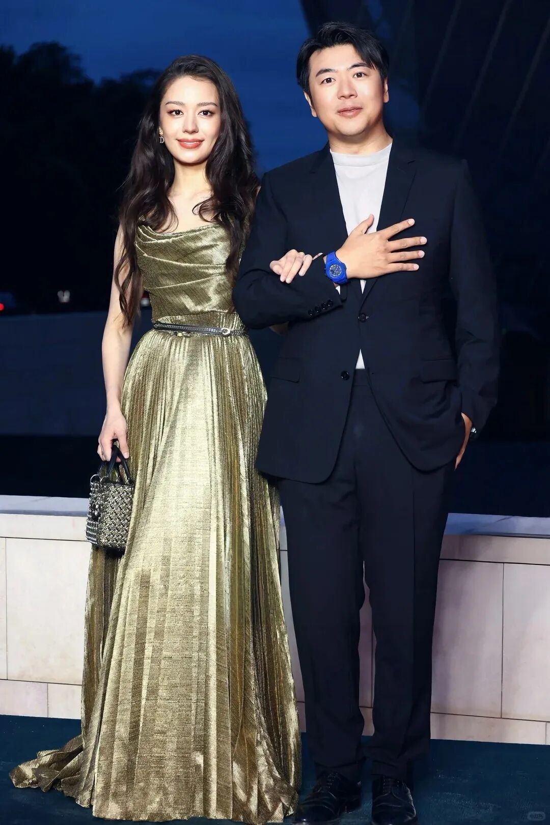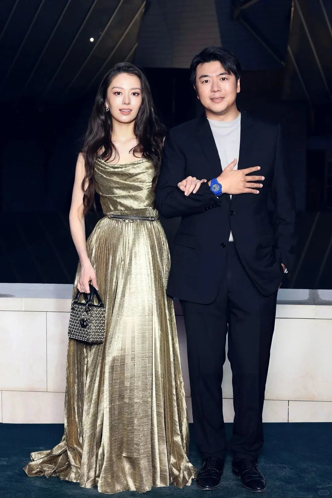 在去年奥运前夕的LV VOGUE之夜上,夫妻二人亮相活动现场,吉娜上身金色礼裙优雅大气,而郎朗则选择休闲西装,二人手挽手甜蜜合影。
