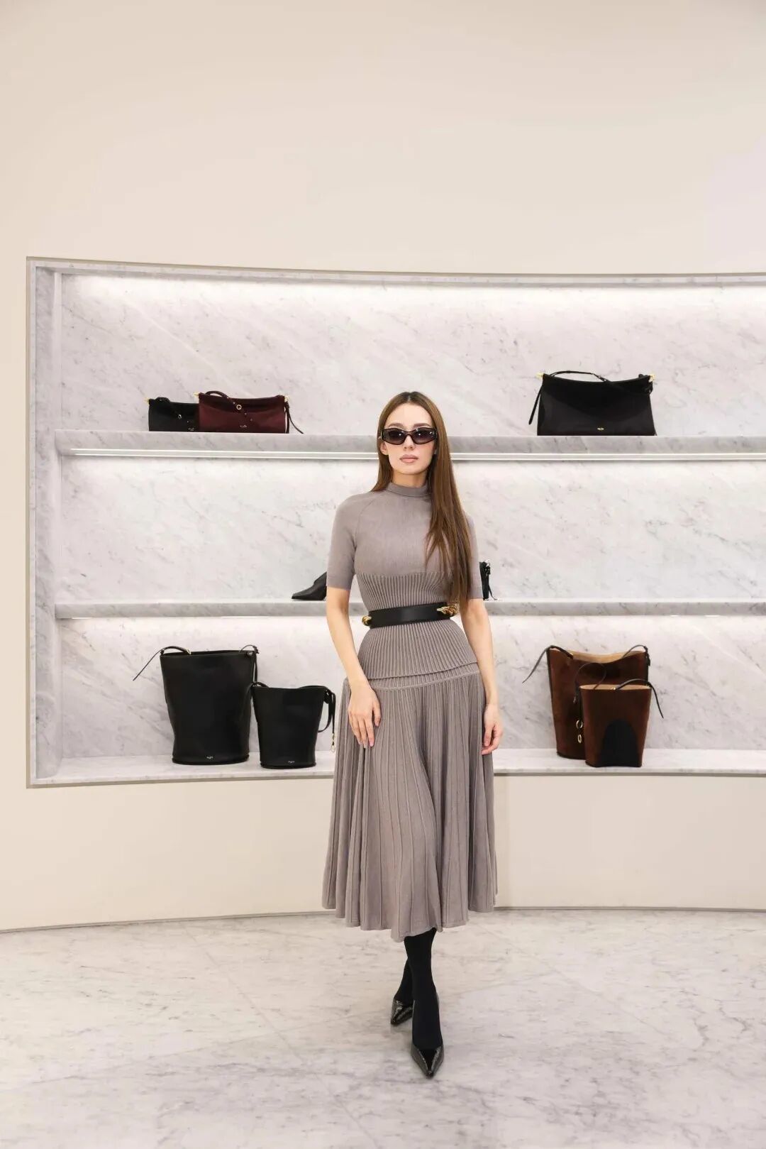 Alaïa活动上,她的高级感穿搭也让人眼前一亮,吉娜上身Alaïa 2026早春系列灰色针织长裙,简约的设计和廓形剪裁增添了时尚感,又把好身材展现的淋漓尽致,搭配的墨镜和黑色腰带也让造型不那么无聊,穿上大衣气场全开。