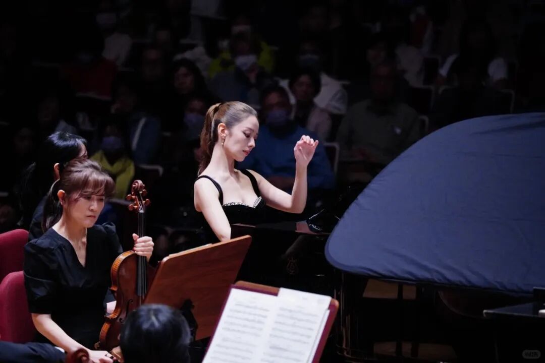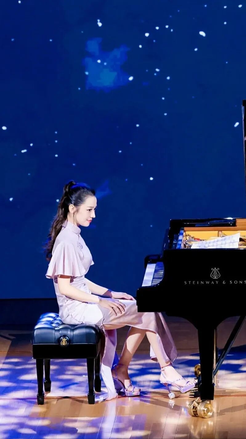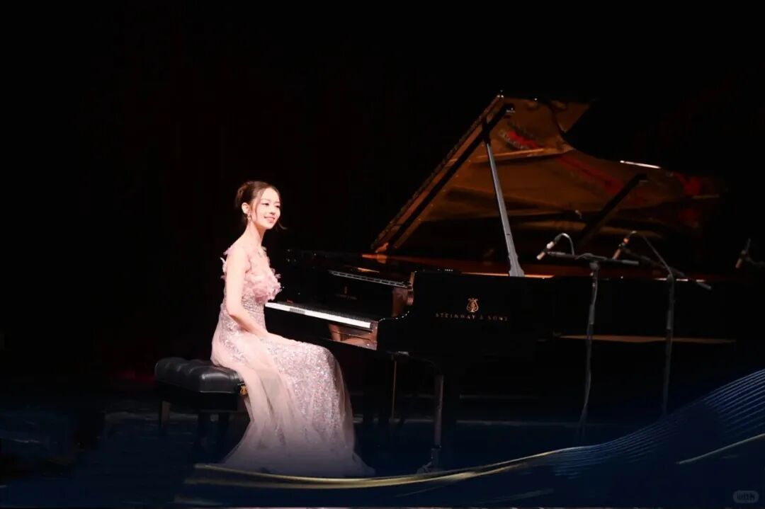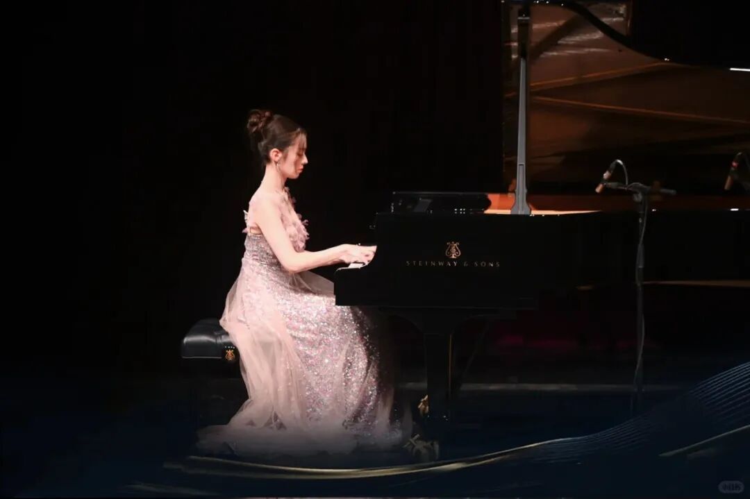 在演出中,她总是选择仙气满满的礼裙,在钢琴的键盘上指尖跃动,让人感觉优雅又灵动,为观众带来一场场视听盛宴。
