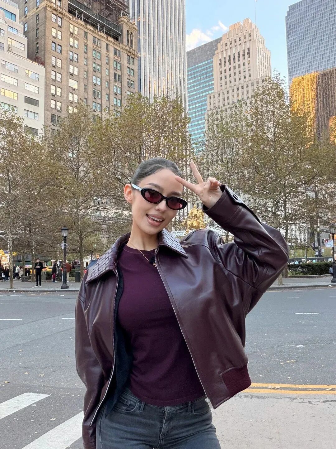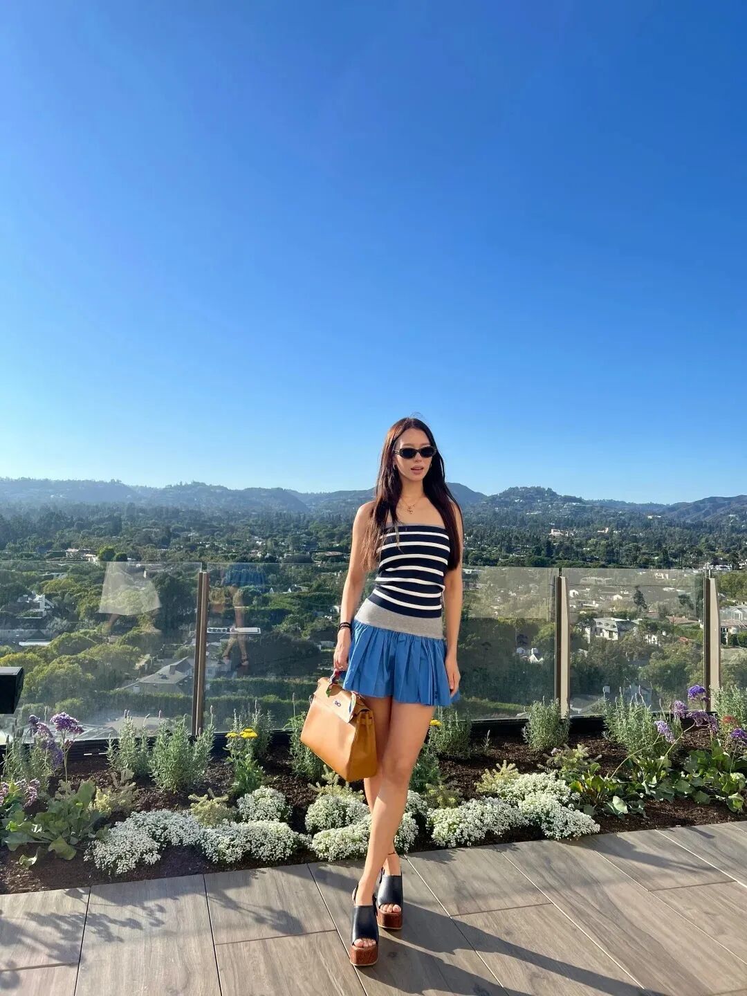 度假穿搭吉娜也稳稳拿捏,总是用细节画龙点睛,墨镜、帽子、包包……直接成为出游出片利器。