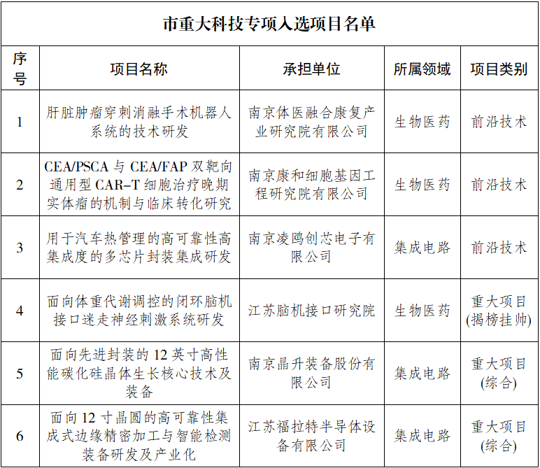 近日,南京市科技局公布了2025年度重大科技专项立项名单,栖霞区6个项目凭借突出的技术创新性与产业契合度成功入选。其中,生物医药、集成电路入选项目各占3席,充分彰显栖霞“生物医药+集成电路”双轮驱动的科创硬核实力。