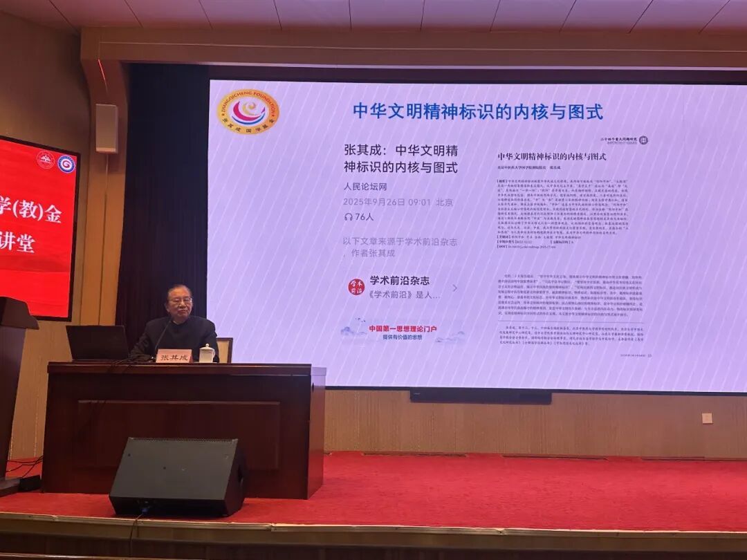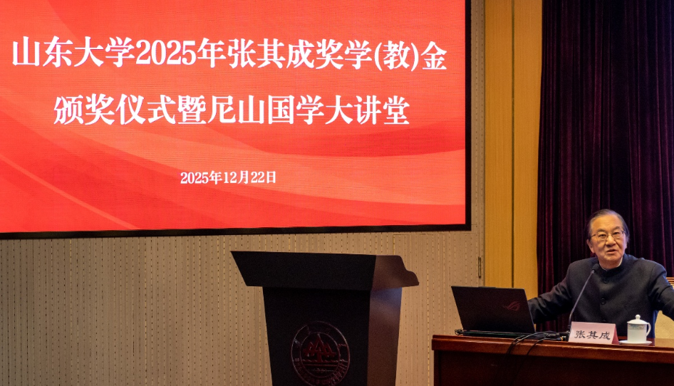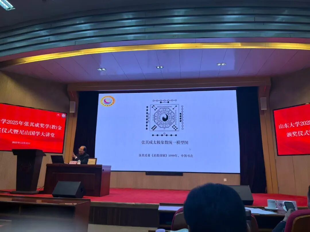 2025年12月22日下午,第五届张其成奖学(教)金颁奖仪式暨尼山国学大讲堂在山东大学邵逸夫科学馆一楼报告厅隆重举行。颁奖仪式后,国际儒学联合会副理事长、山东大学兼职讲席教授,北京中医药大学国学院教授张其成作了题为“易道主干:兼论中华文明的精神标识”的学术报告。报告由山东大学儒学高等研究院原党委书记、教授李平生主持。这也是张其成基金会公益讲堂第九十五讲。