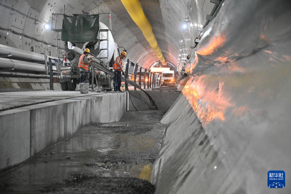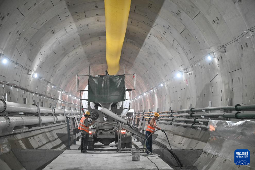 12月27日,工人在南京地铁4号线二期过江隧道内部施工。