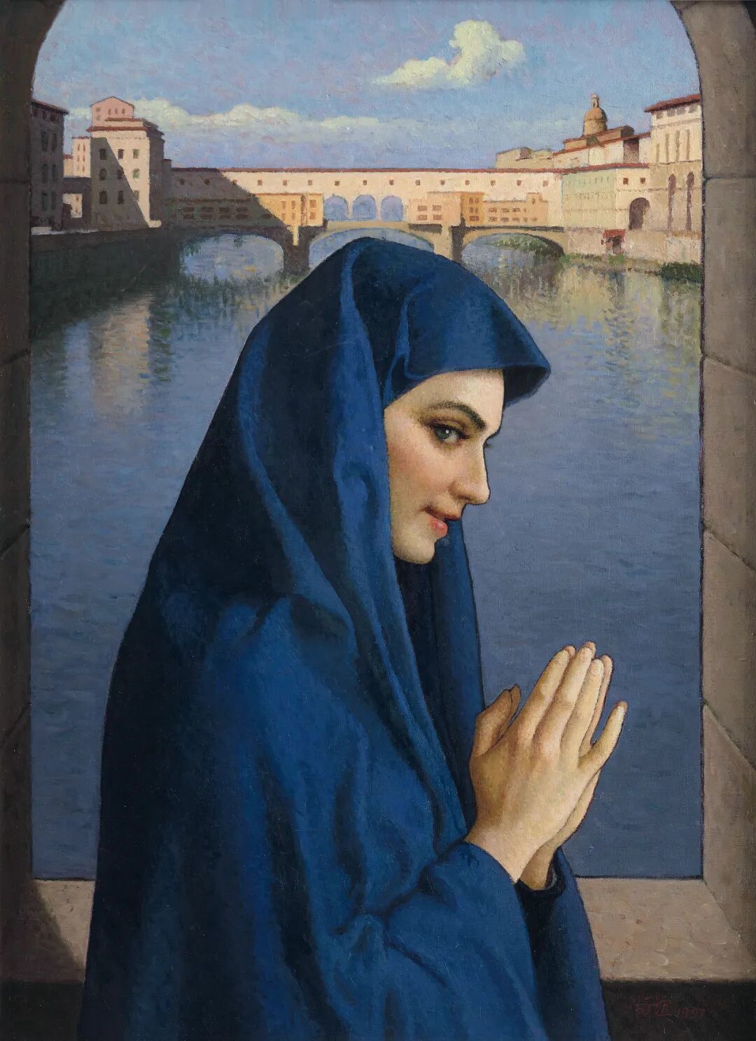 靳尚谊 穿蓝裙子的女士 布面油画 75×56cm 2017年