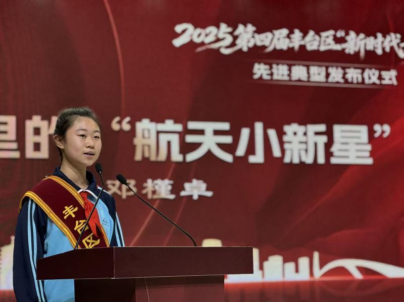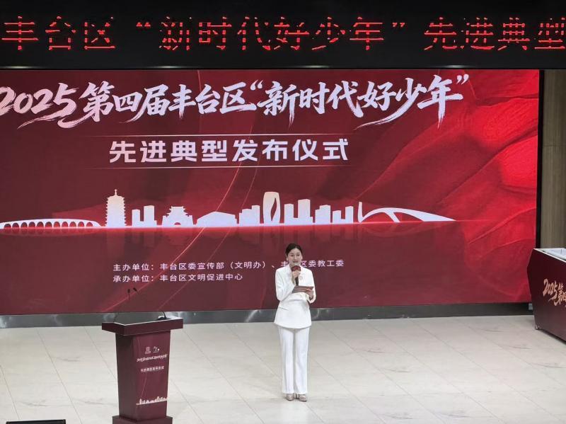 12月26日,由丰台区委宣传部(文明办)、丰台区委教工委联合主办的2025年丰台区“新时代好少年”先进典型发布活动在丰台区第二中学成功举办。活动现场宣布了2025年“丰台区新时代好少年”先进典型及提名名单,丰台区委常委、宣传部部长郭晓一为获奖学生代表颁发荣誉证书。