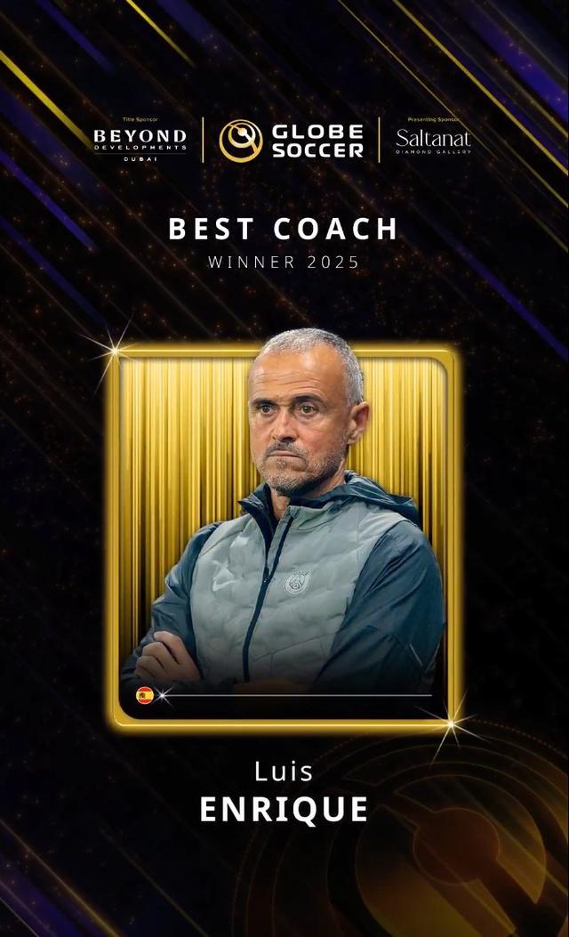 最终在环球足球奖年度最佳的评选中,恩里克被评为了2025年最佳教练。