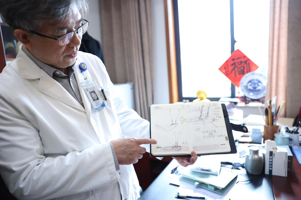 浙江省人民医院副院长张大宏展示设计草图。张灵摄