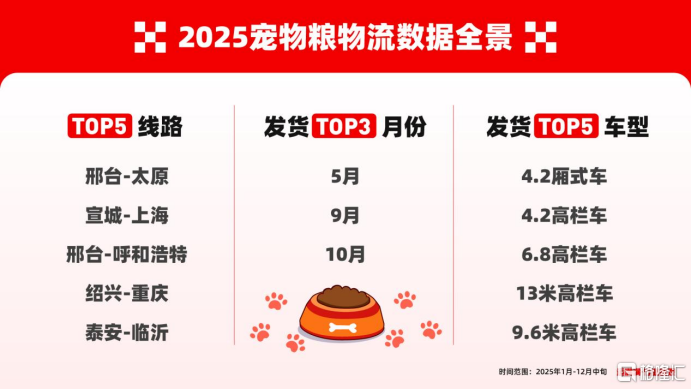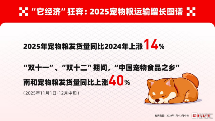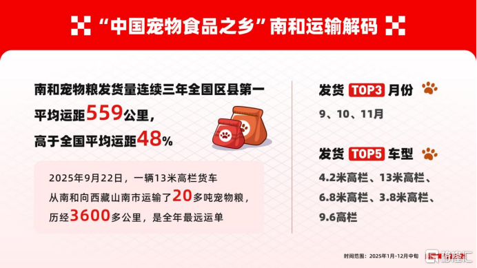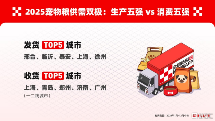 2025年,"它经济"持续升温。在中国宠物经济持续扩容、消费结构加速升级的背景下,宠物食品行业正从"规模增长"迈向"结构分化"的新阶段。作为连接生产端与消费端的重要基础设施,物流数据正在成为观察这一行业变化的关键切口。2025年即将收官之际,数字货运平台运满满发布《2025宠物"干饭"物流图鉴》行业数观,基于平台宠物粮运输数据,从增长趋势、供需结构、线路车型、运输半径等多个维度,呈现宠物粮在中国市场的真实流动图谱,并深入河北南和宠物粮企业一线观察企业生产运输,让"行业数观"不止停留在纸面数据,而是落到真实的工厂与每一趟在路上的货车上。