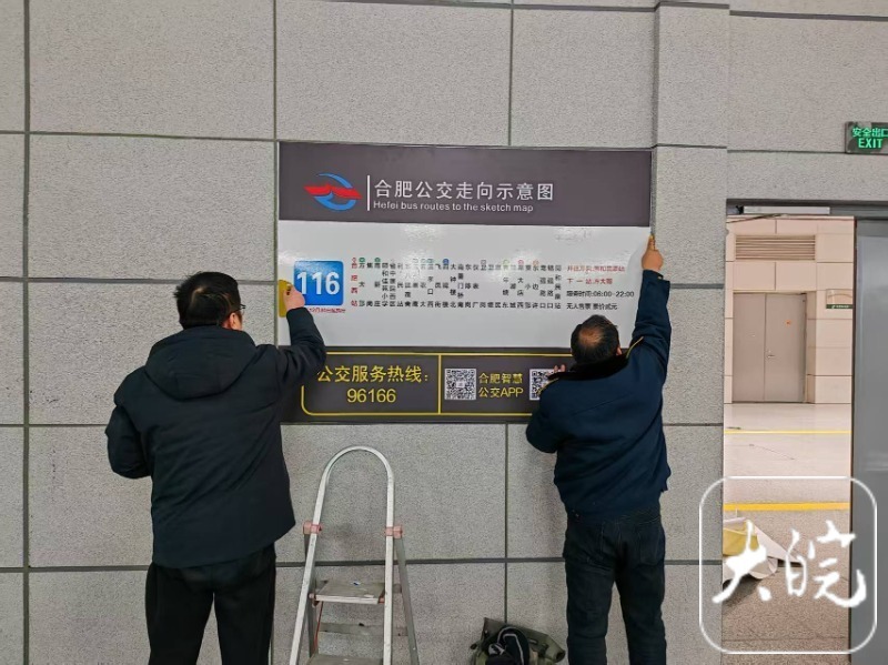 目前,合肥公交集团正在合肥西站内的相应位置张贴合肥公交线路走向示意图,之后还会根据客流情况,继续优化途经线路。