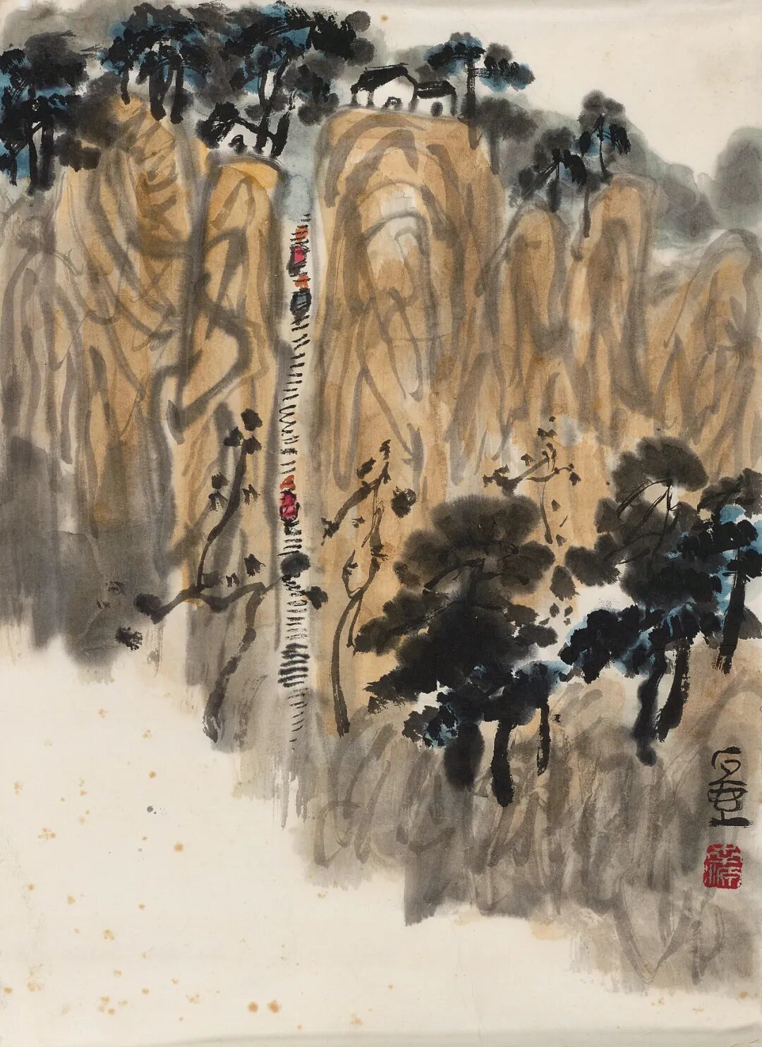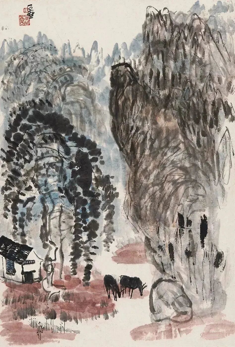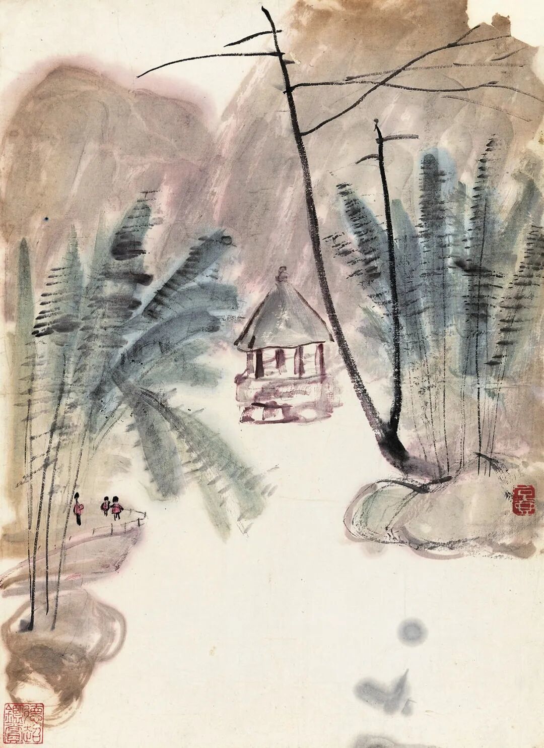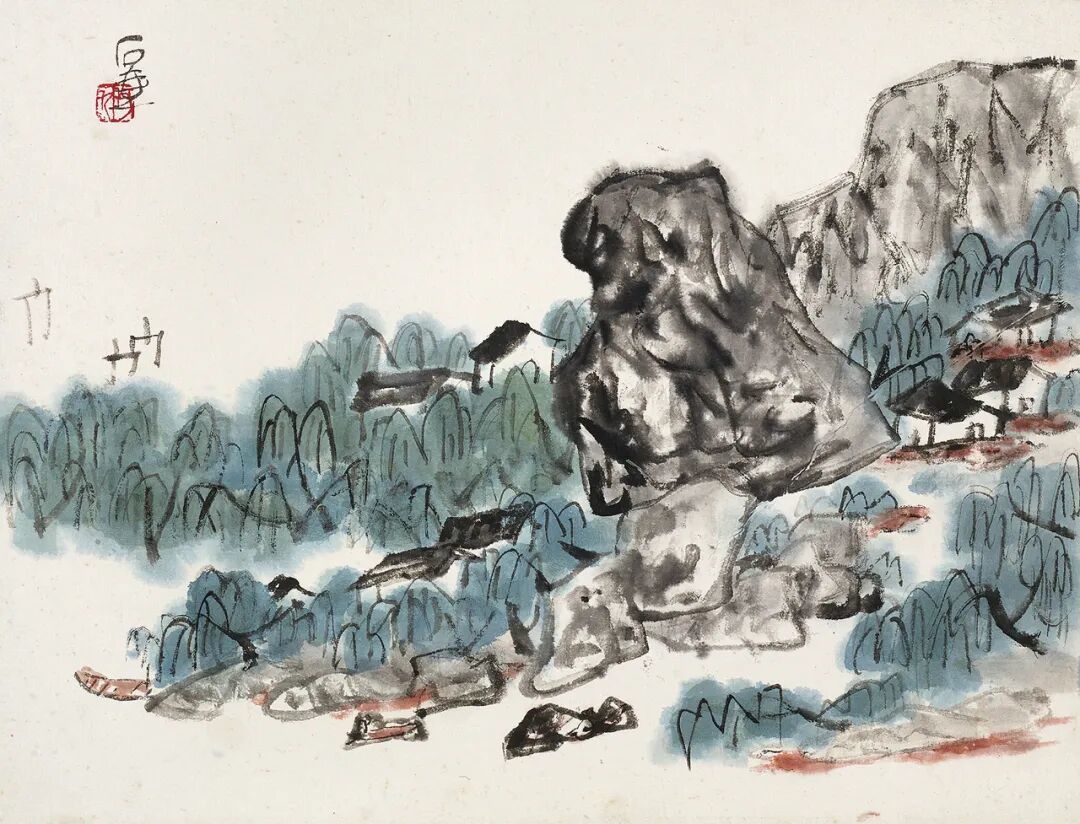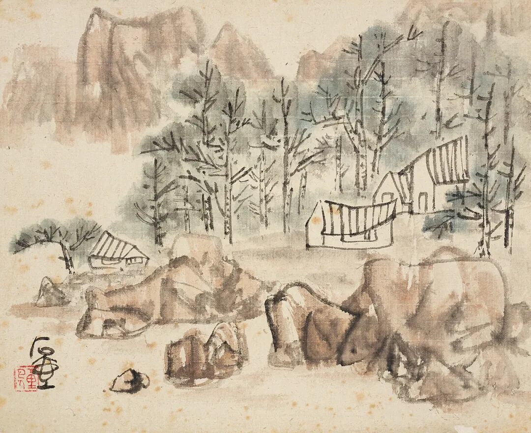 写人物最难。写其外貌、举止、衣饰之特征难,模拟其性格、心情、精神状态之微妙则更难。画山水着色不宜笔刷,只宜用笔墨点染或皴染,刷则使默契有损,点皴法可以增其厚浑,亦无损于墨色也。用色不可太轻匀。宁浊勿清,清则轻薄,浊则厚浑。好画,初看平淡,细看则情趣自然,意味厚隽永自在其中。这一点与古法有出入,学者宜细参之,久则自悟性。