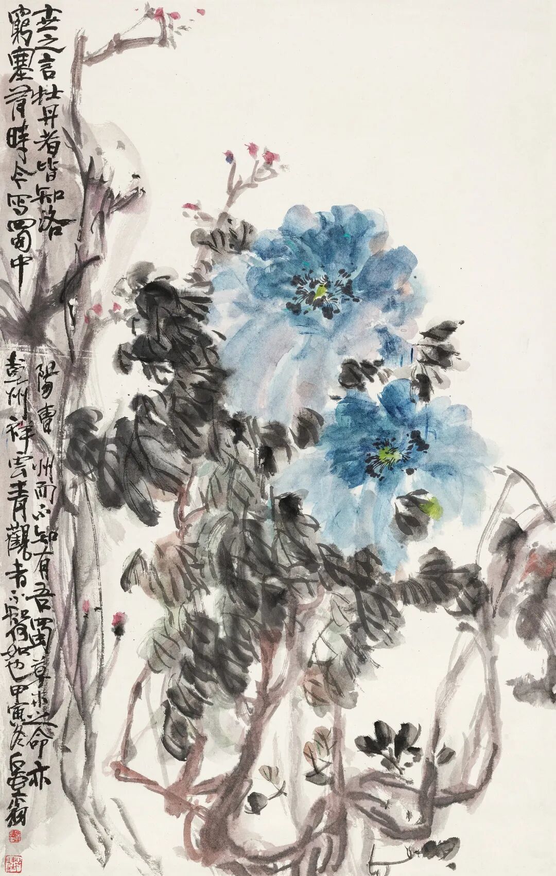 总的来说,一幅画必须得其全势,根、干、枝、花、叶各有所安,隐藏显露,各得其宜。要不然疏密不分,高下不别,既不讲究浓淡,又不考虑虚实,或者四面生枝,或者上下齐叶,把枝、干、花、叶塞满纸,要想给人以美的享受,怎么可能呢?