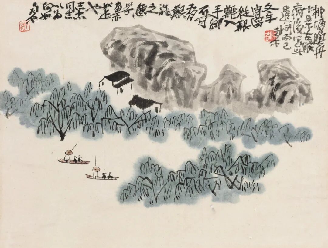 陈子庄 柳塘渔舟小景