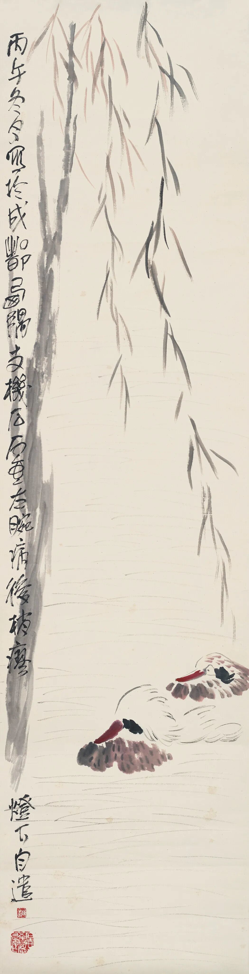 陈子庄 柳荫双禽