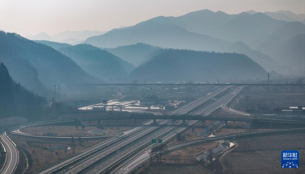 这是位于陕西省宝鸡市眉县境内的眉太高速路段(12月29日摄,无人机照片)。