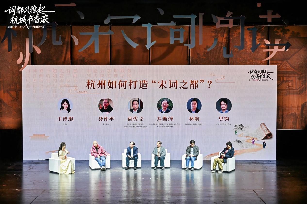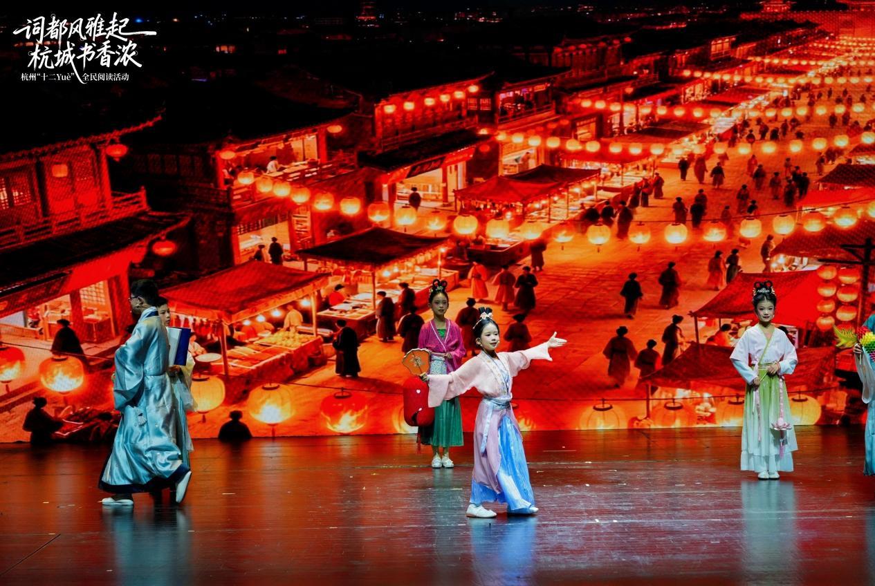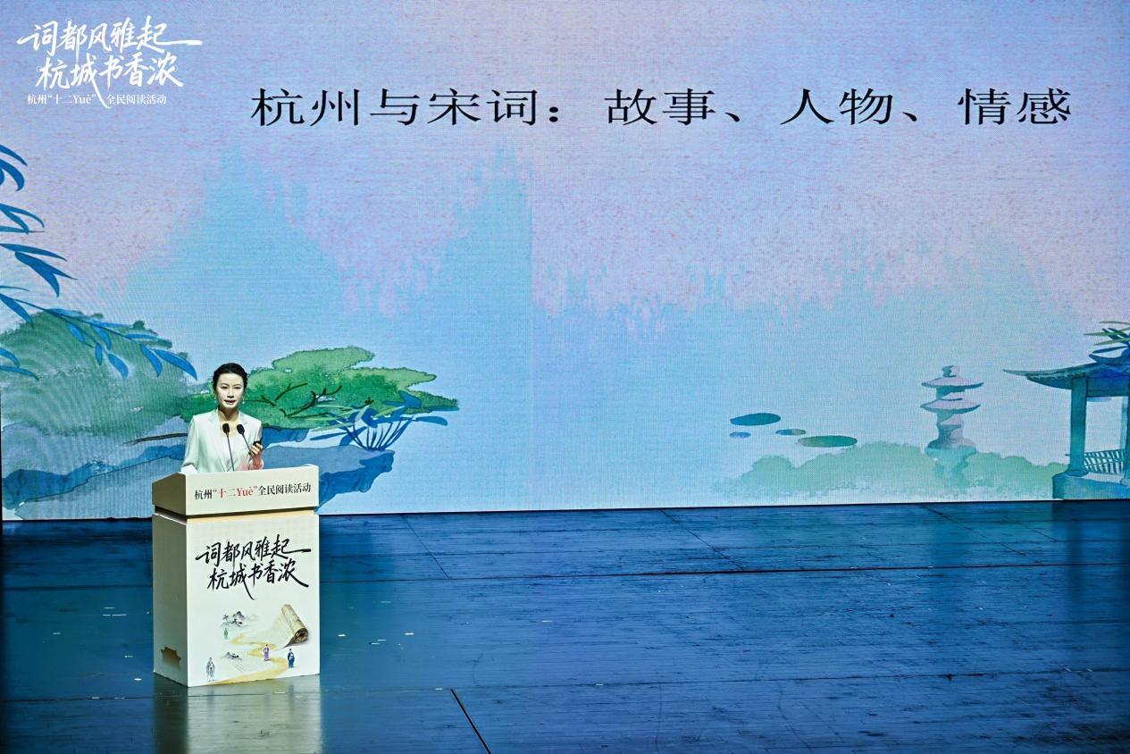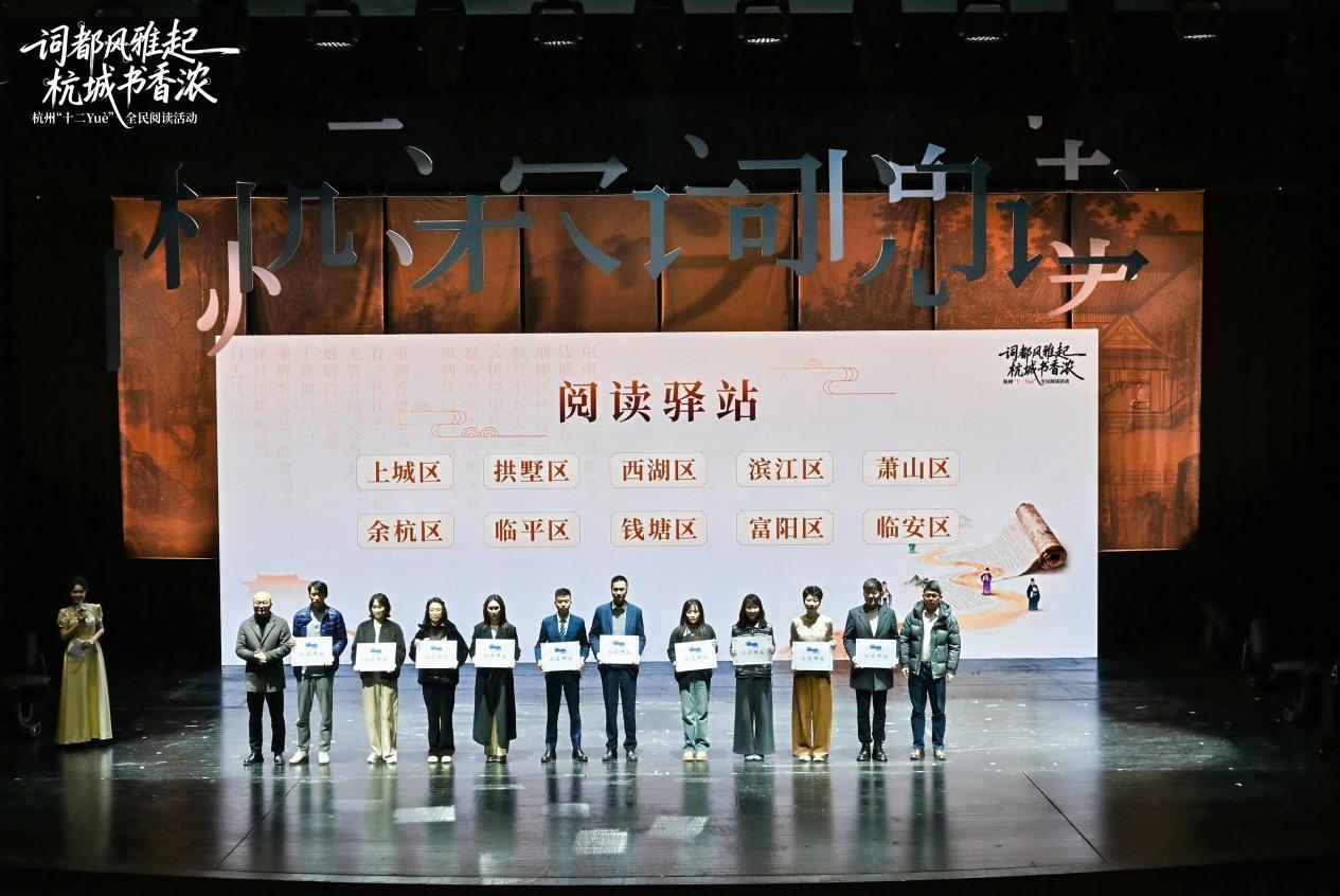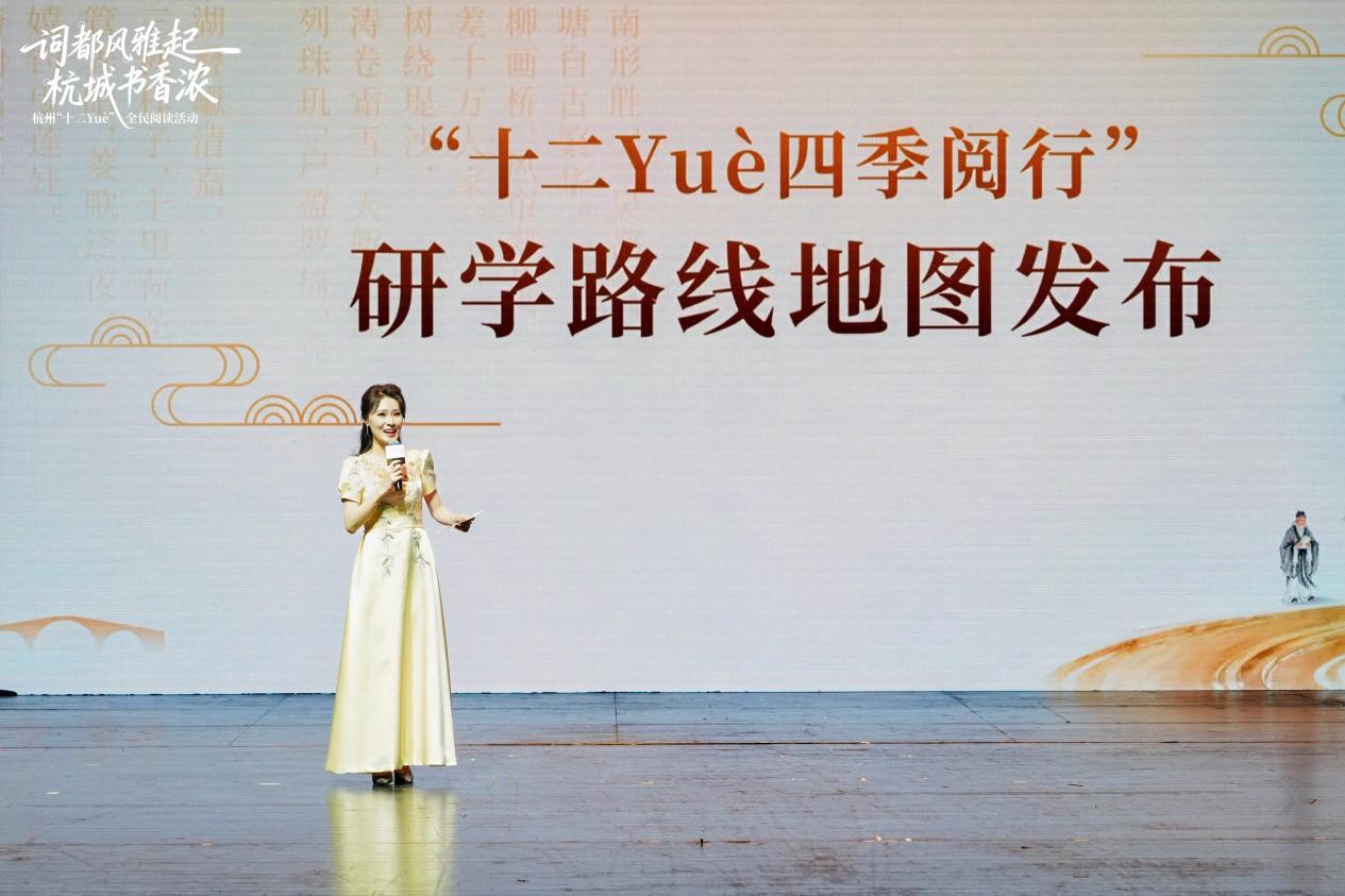 在为期一周的时间里,2025杭州“十二Yuè”全民阅读活动以“词都风雅起 杭城书香浓”为主题,集中推出了“六个一”系列活动:一场全民阅读大会、一次“寻找宋词里的杭城”研学游、一方沉浸式的“宋词游园会”、一脉薪火相传的宋词诵读活动、一台古今和鸣的“宋词双阕”音乐会、一席思想碰撞的杭州书房“名家播客局”,让经典宋词融入当代生活场景。