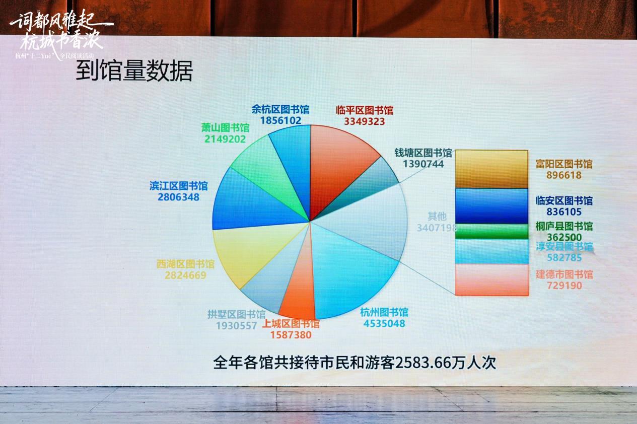 会上,陪伴了杭州读者五年的阅读搭子“杭小图”发布《2025年度杭州地区公共图书馆阅读报告》:2025年,杭州市公共图书馆文献总藏量达2810.18万册,其中纸本文献增加了150.24万册,电子文献增加了82TB(太字节);全年各馆共接待市民和游客2583.66万人次,纸本文献借阅量1240.49万册次,数字资源浏览量突破1亿次;“一键借阅”面向60周岁以上读者推出“银龄专属免邮券”,带动全年线上借阅达6.16万人次、19.44万册次;杭州地区公共图书馆2025年共开展各类阅读推广活动28730场,参与1990.02万人次……