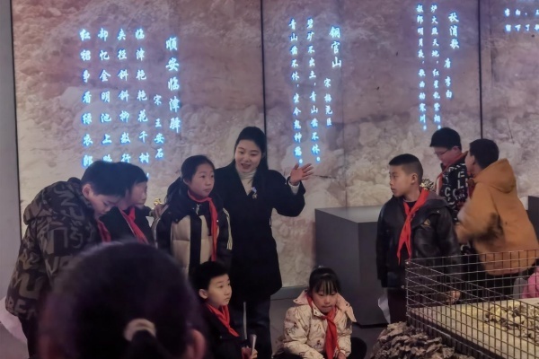 来自露采小学的宋杰老师以场馆内呈现的诗词为抓手,现场进行《秋浦歌十四》教学,通过提炼古诗中的思政教育元素,引导学生透过诗词感知古人冶铜时的壮观场面,体悟古代劳动人民的勤劳和智慧。