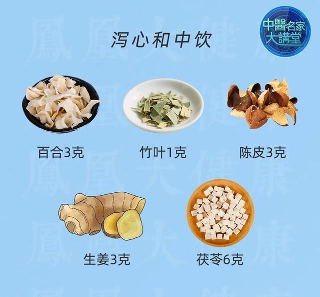 【用料】百合3克、竹叶1克、陈皮3克、生姜3克、茯苓6克;