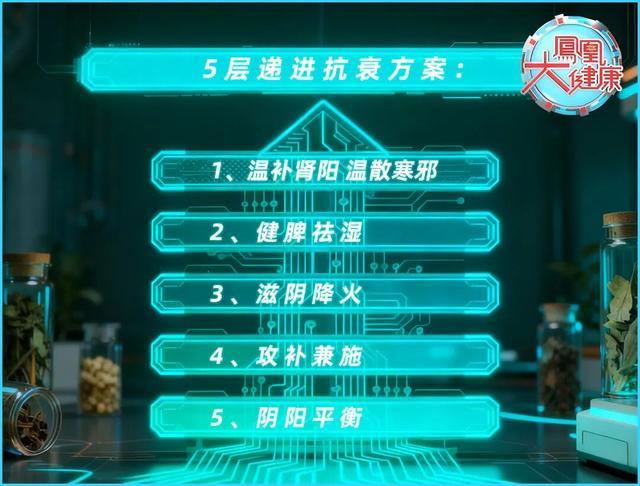 “5层递进抗衰方案”的第一层是温补肾阳、温散寒邪,这层方案非常重要,能够帮我们打好抗衰的根基。