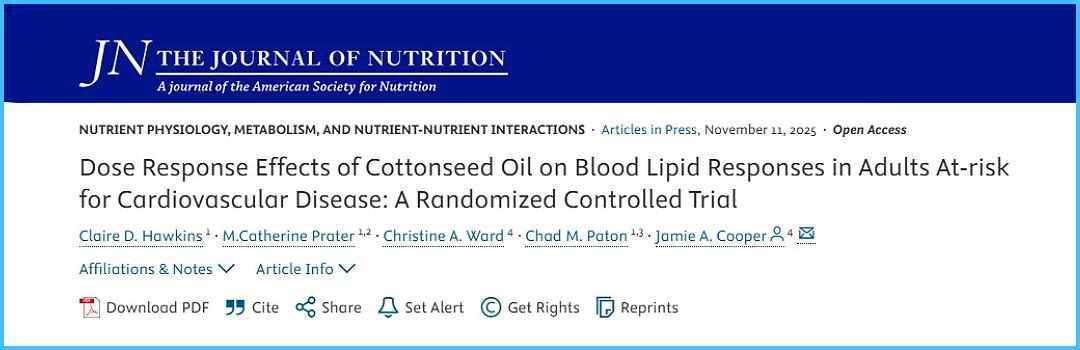 现代医学也为棉花籽油能降低血脂提供了佐证!2025年11月,《营养学杂志》发表的论文指出,适度用棉籽油代替日常用油,仅1个月,就能显著降低心血管疾病高危人群的血脂水平,甚至部分效果堪比常规降脂药物。