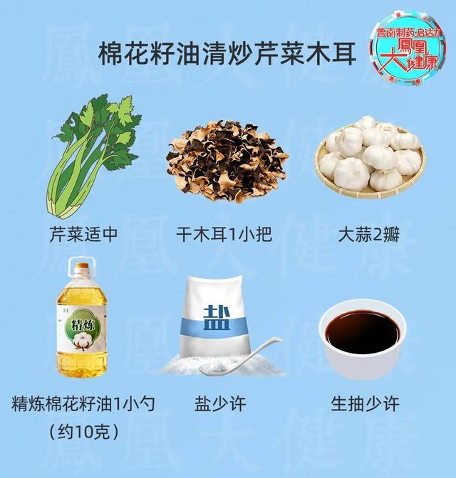 芹菜能清热利湿,木耳可活血化瘀,再搭配棉花籽油的温性润燥,既能帮着排痰湿,又能清理血管里的“垃圾”。