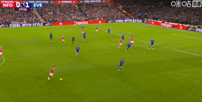 第19分钟,麦克尼尔送出直塞,加纳推射破门!诺丁汉森林0-1埃弗顿