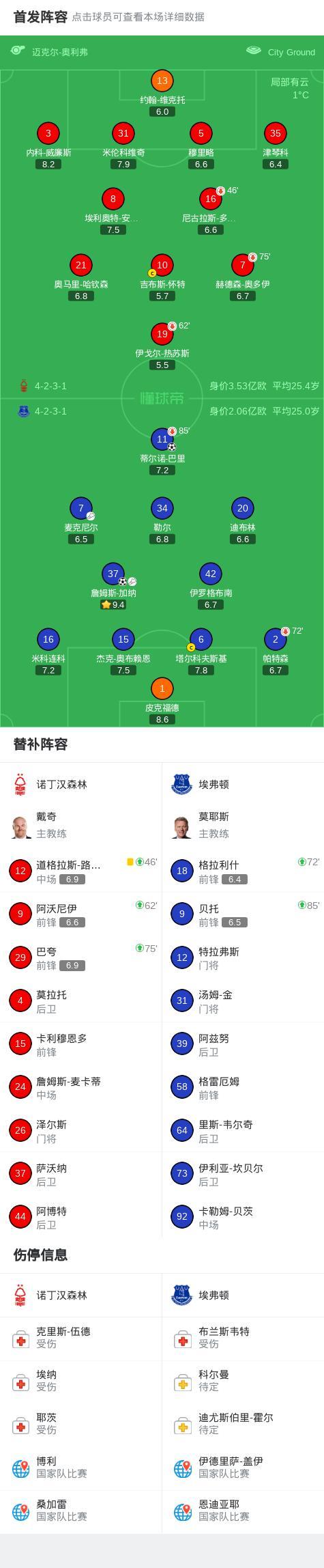 北京时间12月31日,英格兰足球超级联赛第19轮,诺丁汉森林主场迎战埃弗顿。上半场,麦克尼尔助攻加纳推射破门;下半场,加纳精准斜塞助攻巴里推射得手。全场比赛结束,最终诺丁汉森林0-2不敌埃弗顿。