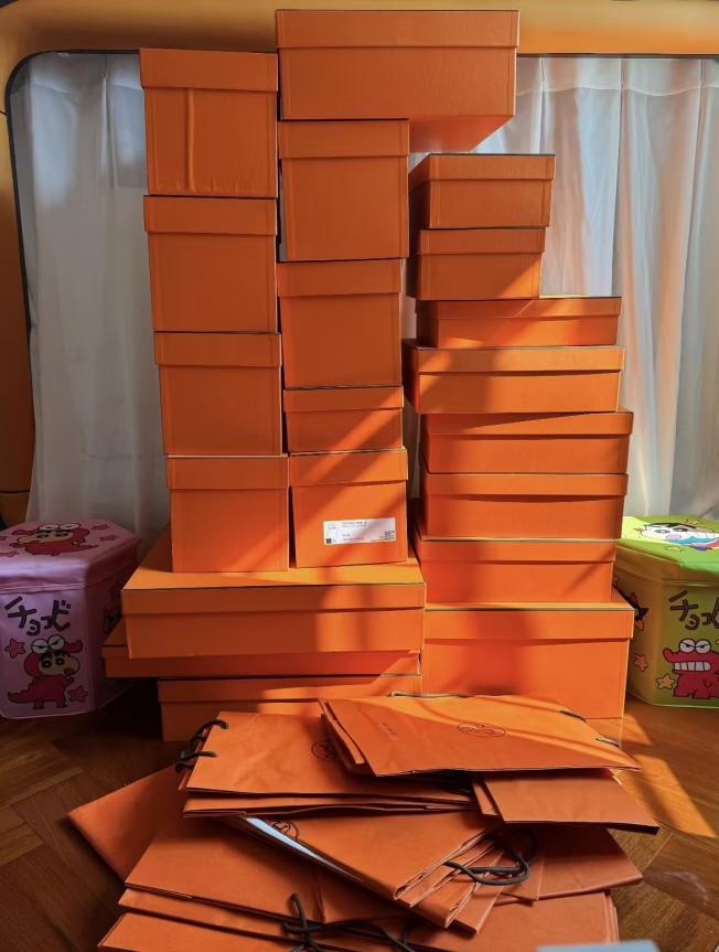 她还注意到,Logo醒目、设计简约的基础款往往更容易脱手,而追逐潮流的限量款或季节性单品,则迅速贬值。最令她意外的是,连爱马仕那些印着橙色烫金标志的包装盒,也能在二手平台卖出三五百元一个。