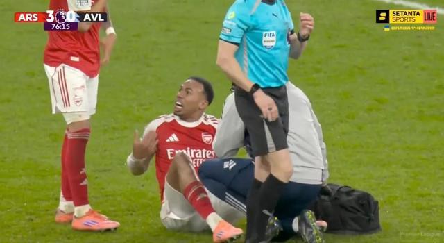 下半场比赛中,加布里埃尔受伤倒地接受治疗,而他似乎被过来的队友因卡皮耶踩中手指,随后他迅速拿起手还甩了甩。