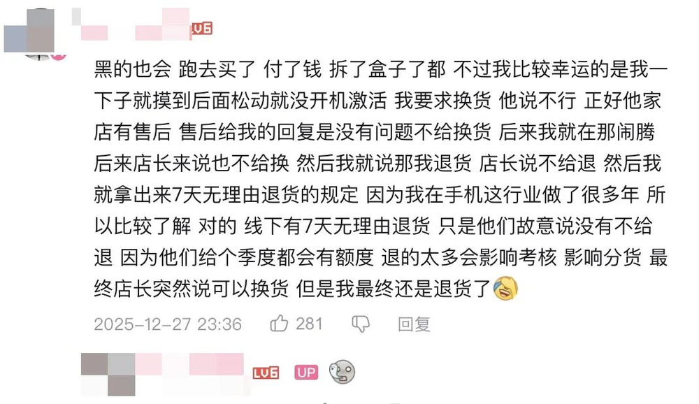 所以,其实早在手机到货的前两天,就有博主拿着自己购买的手机和线下零售店的展示机进行了比较,发现确实有一些展示机的变焦环会紧一点;后来随着第一批购买的手机逐渐发货,更多的用户发现了手头上的手机有松动问题,他们去对比过之后才实锤,其实展厅的机器照样松。
