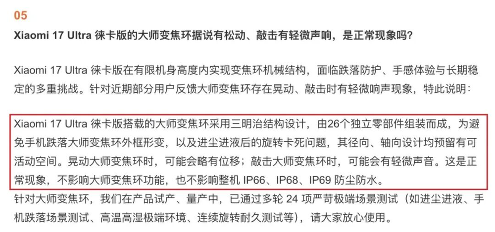 最早发现小米17 Ultra大师变焦环松动问题的,是一批比较硬核的数码博主。