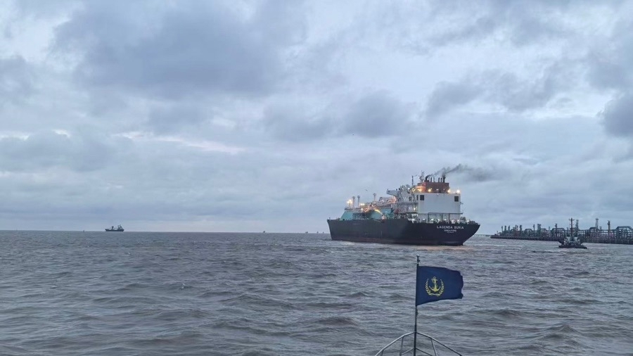 1月1日,液化天然气船“传奇太阳”轮在浦东海事局周密护航下,安全驶离上海外高桥五好沟LNG码头。该轮此次所卸下的32354.149吨液化天然气,将为上海抵御本次寒潮大风、满足元旦期间城市用气用电提供坚实保障。