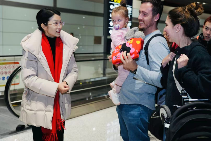 一出舱门,游客们就被憨态可掬的“北京礼物”马墩墩人偶吸引,争相合影留念。“我之前在这里生活学习过,很有感情,所以看到有合适的航班,我就买了来北京的机票,很期待此次中国之行。”德国游客Moriz难掩兴奋。来自北京的欢迎仪式与伴手礼,更让他切实体会到这座城市的温暖。北京市文化和旅游局特别为游客送上寓意吉祥的“来京大礼包”,内含“北京新发现”十大冬季冰雪旅游线路、《你好,北京》入境游攻略、《住在北京》酒店手册及离境退税指南,同时整合滴滴出行、携程集团、秀水街等企业专项优惠,全方位丰富游客的北京之旅。