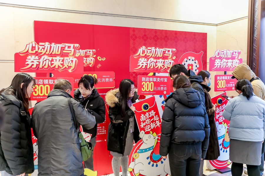 2025年12月31日晚,商场内人山人海、客流涌动,销售额达到3988万元,同比增长14.56%。商场负责人介绍,多重消费券叠加的实惠福利成为拉动消费的重要引擎,黄浦元旦消费券、“南京路和你一起迎新年”线上线下消费券与商场自有优惠叠加,让消费者尽享实在优惠。