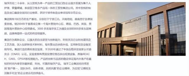 据瑞孚工业集团官网和“宁波市品牌建设促进会”发布的信息显示,瑞孚工业集团的前身是陈奇伟创立于1999年的隆发梳业,历经二十余年的发展,已从以发梳为单一产品的工贸出口型企业,逐步发展为集个人护理、婴童喂辅、家居厨卫等多产品线为一体的工贸型集团公司。