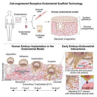 如今,Babraham 研究所与斯坦福大学的研究团队在《Cell》发表重磅成果:他们成功构建了能高度模拟人类子宫内膜的 3D 模型(CREST),首次在体外完整还原了胚胎植入及后续 14 天的发育过程,为破解植入失败、妊娠并发症的起源提供了全新工具。