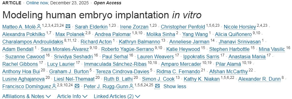 Matteo A. Molè et al, Modelling human embryo implantation in vitro, Cell (2025). DOI: 10.1016/j.cell.2025.10.027.