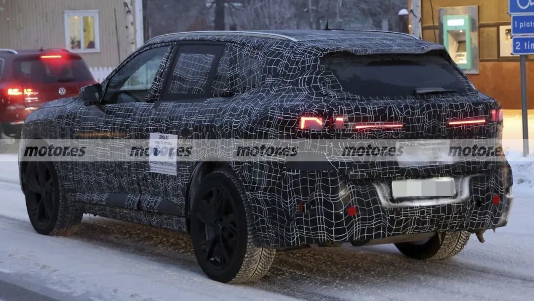 尾部造型方面,车顶配备有小尺寸的扰流板以及高位刹车灯,熏黑的尾灯组造型非常扁平,多少能够看到一点宝马XM的感觉;牌照框区域采用了内凹式设计,尾门似乎也依然是上下对开的设计,下包围部分的造型还无法判断,排气管很有可能是隐藏式布局。