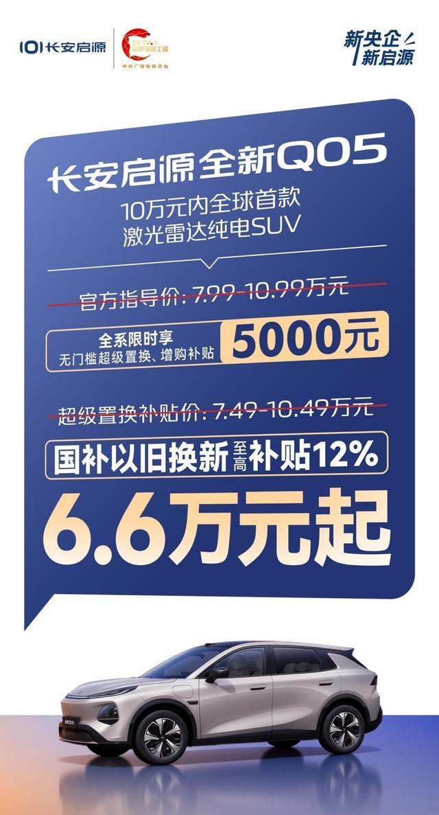 国补已就位,时机不等人!10万元内全球首款激光雷达纯电SUV——长安启源全新Q05,助你一站式锁定政策红利。新年焕车,抢档福利,即刻冲刺,轻松焕新!