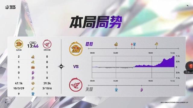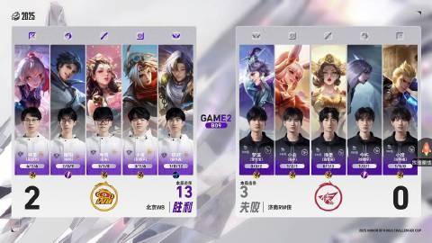 本局北京WB利用橘右京前期的强势率先在下路破局,中期梓墨曹操发育成型接管战场,北京WB不到14分钟就赢下了第一局比赛。