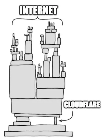 不过嘛,一旦 Cloudflare 宕机,半个互联网就得遭殃,也因此诞生了不少梗图。